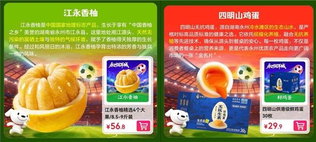 一场足球赛,不仅让永州这座城市被更多人了解,也让永州的农民得到了切实的实惠。通过打造“观赛+购物”的沉浸式体验,京东生鲜携手永州市政府打造出政企合作的新模式,为“永湘甄选”这一区域公共品牌提供了更多的支持,推动其成为永州特色农产品品牌化、市场化输出的稳定渠道。另一方面,通过京东生鲜超级供应链与数字化能力,永州的江永香柚、东安鸡等优质产品能够以更快的速度、更新的鲜度抵达全国消费者的餐桌。